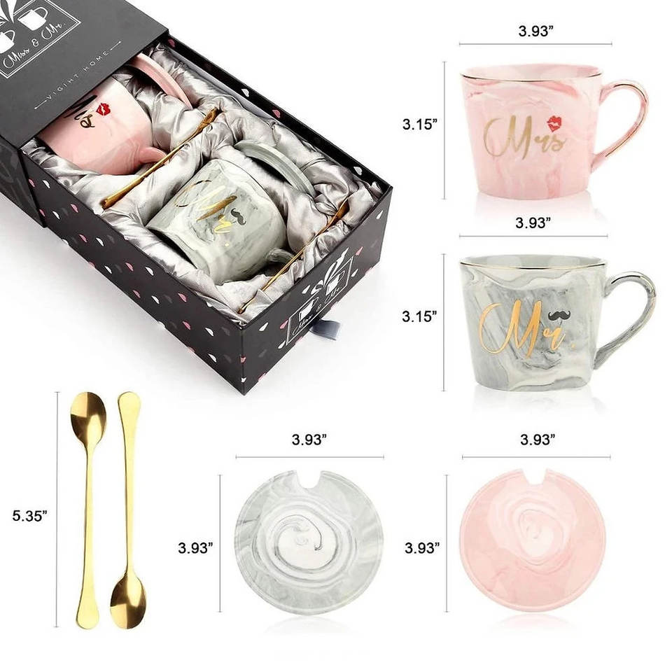 MR MRS ชุดแก้วกาแฟเซรามิกงานทำมือความจุ14ออนซ์ช้อนเครื่องล้างจานไมโครเวฟปลอดภัยกล่องของขวัญแต่งงานที่สมบูรณ์แบบ