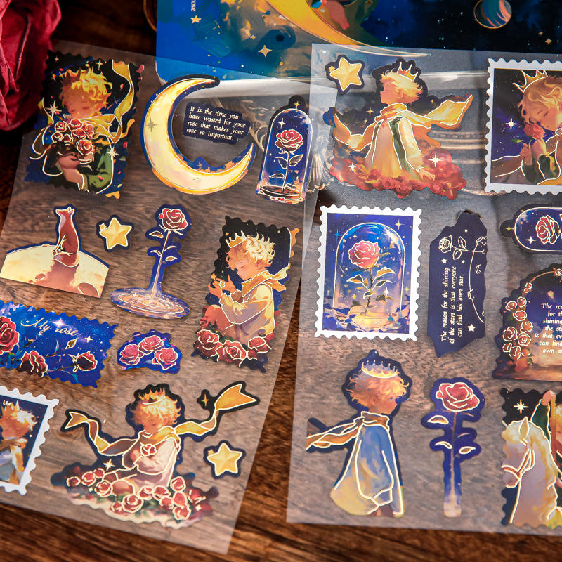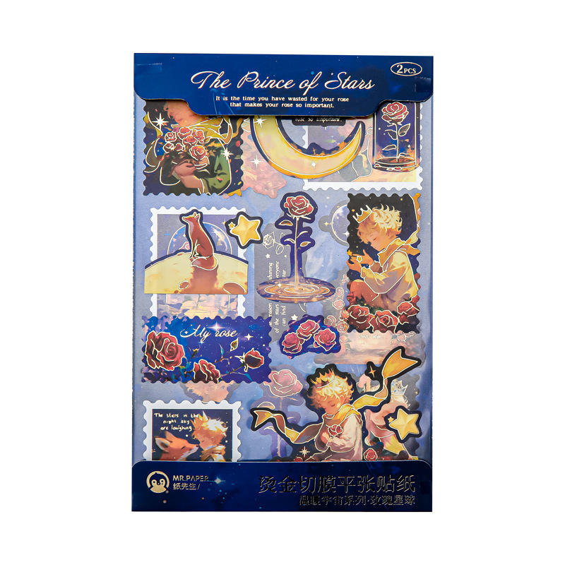 สติกเกอร์เครื่องเขียนแผ่นฟิล์มฟอยล์สีทองชุดเจ้าชายแบนสร้างสรรค์สมุดบันทึกตัวละครสร้างสรรค์วัสดุตัดฟิล์ม