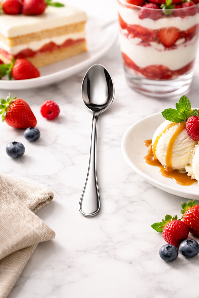 ช้อนขนม Raya ช้อนสแตนเลส175มม. 18/0 monoblock MANGO เครื่องล้างจานปลอดภัยป้องกันการกัดกร่อนสไตล์คลาสสิก