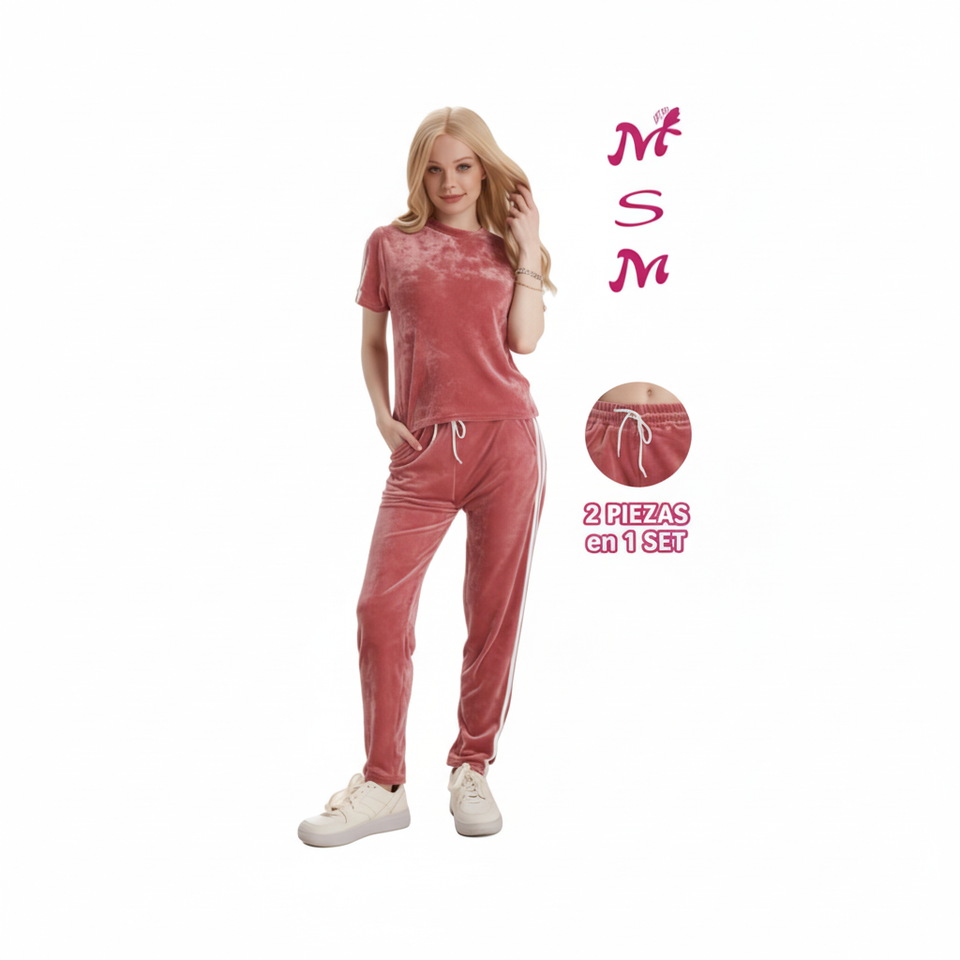ชุดวอร์มผู้หญิง Msm สีพื้น ผ้ากำมะหยี่ แขนสั้น คอกลม กางเกงมีเชือกผูก เอวสม็อค ใส่สบายๆ สำหรับฤดูใบไม้ร่วง ทรงปกติ ความยาวเต็มตัว