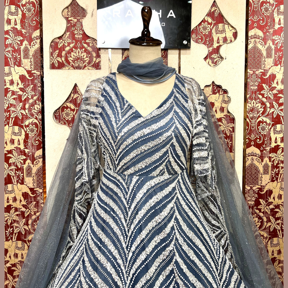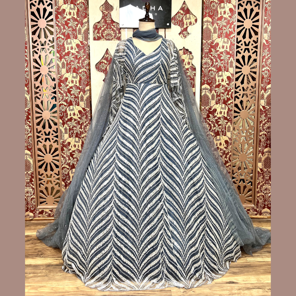 MSOT ชุดกาวน์สีเทาสีเทาแบบสเปนพร้อมลูกปัดและเลื่อมทำงานได้อย่างยอดเยี่ยมสำหรับโอกาสพิเศษจากอินเดียขายส่ง