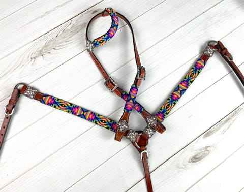 ชุดสายรัดศีรษะหนังวัวแท้สีออกใบสีแบบตะวันตกชุดสายรัดอกติดลูกปัดสำหรับขี่ม้า