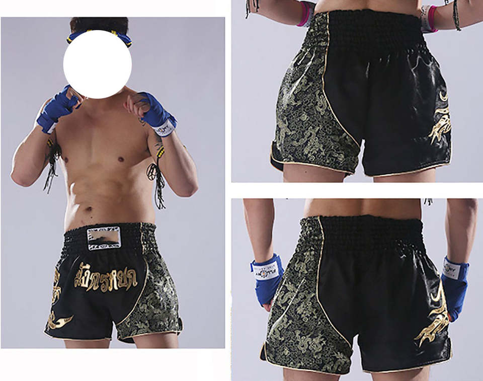 กางเกงมวยไทยผู้ชายแบบแห้งเร็ว ดีไซน์เองได้ ทรงลำลอง เอวกลาง ผ้าตาข่ายโพลีเอสเตอร์ด้านใน ทนทาน ระบายอากาศดี รับผลิตแบบ OEM