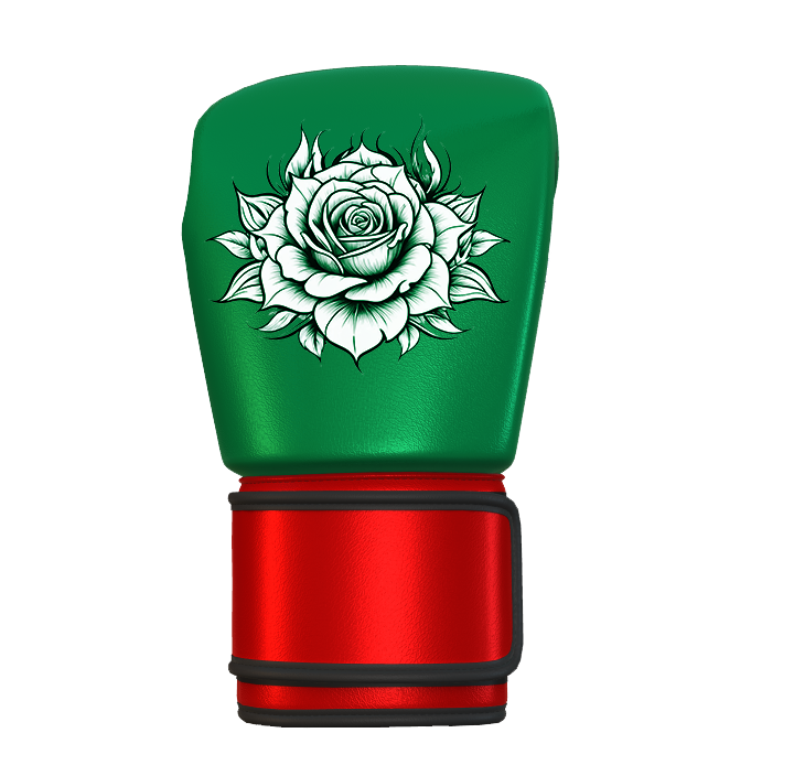 ถุงมือชกมวยไทยถุงมือหนังแบบมีห่วงตะขอสำหรับผู้ชายและผู้หญิงสีเขียวสีแดงพร้อมโลโก้กุหลาบดอกบัว