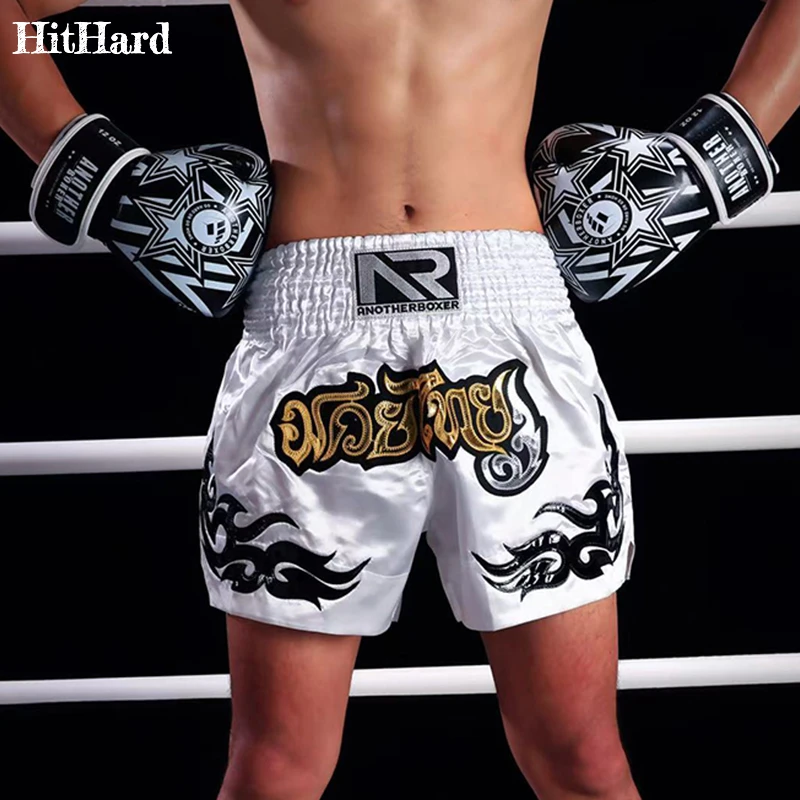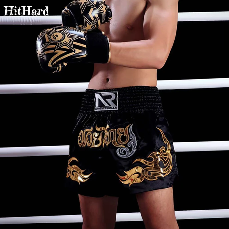 กางเกงมวยไทยคิกบ็อกซิ่งสำหรับผู้ชาย ผู้หญิง เด็ก กางเกงมวยไทยปักลายไทย สำหรับออกกำลังกายในยิม สีดำ กางเกง MMA BJJ ยิวยิตสู