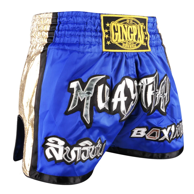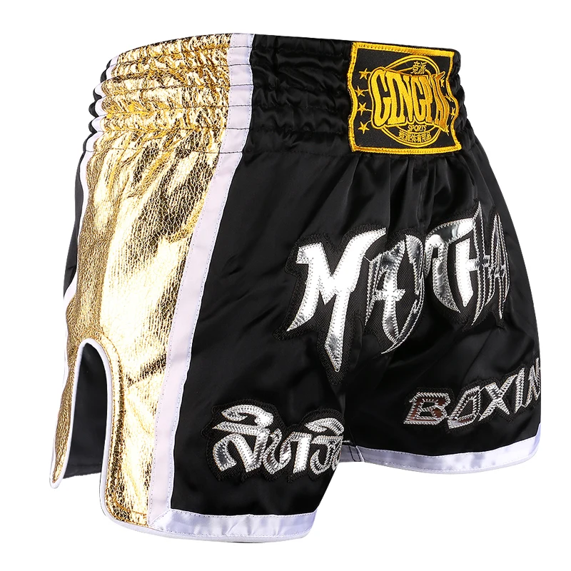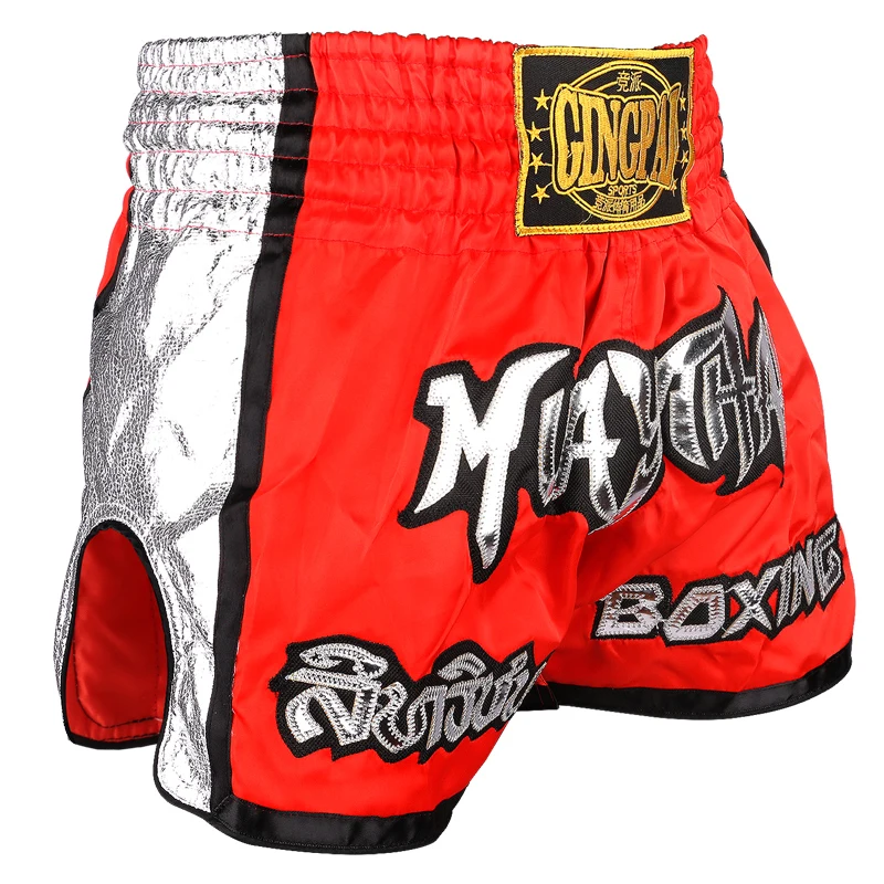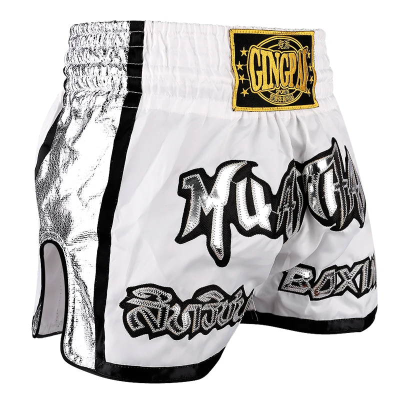 กางเกงมวยไทยปักลาย กางเกงมวยไทยชายหญิงเด็ก ผ้าซาติน สำหรับ BJJ MMA ชุดออกกำลังกาย กางเกงสำหรับต่อสู้ในกรง กางเกงคิกบ็อกซิ่ง