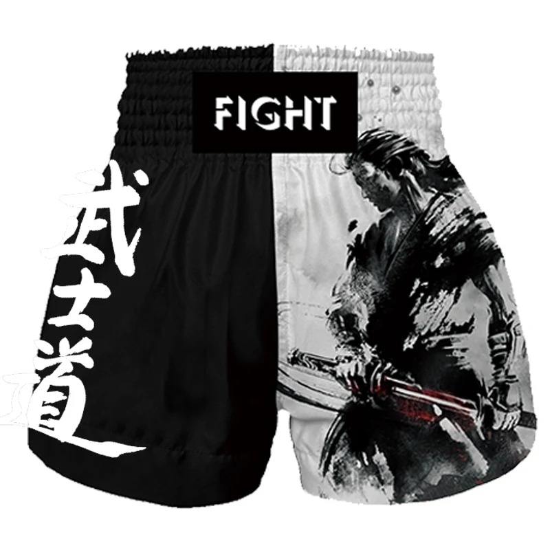 กางเกงมวยไทยแบบ unisex สีดำกางเกงคิกบ็อกซิ่งสำหรับใส่เล่นกีฬาฟิตเนสต่อสู้