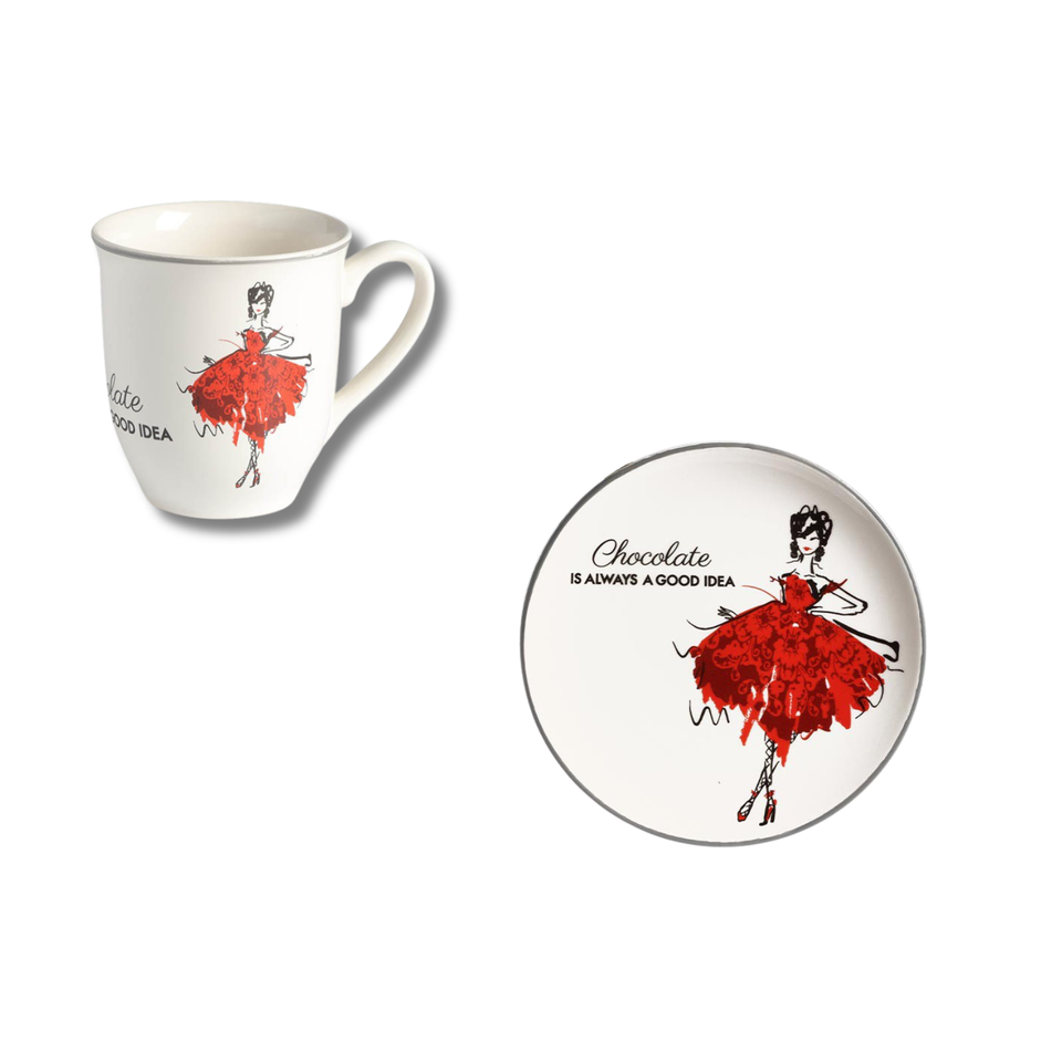 ชุดแก้วมัคและจานขนมหวาน 22 ซม. ชุดเดรสสีแดงบัลเลริน่า ช็อกโกแลตเป็นไอเดียที่ดีเสมอ