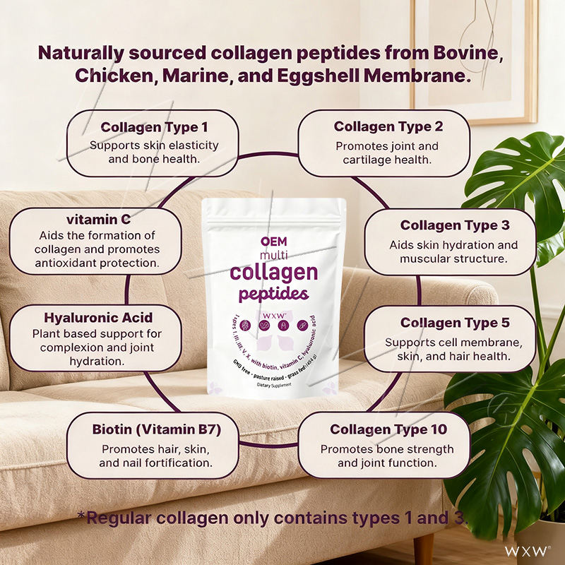 ผงคอลลาเจนเปปไทด์หลายชนิด สำหรับเสริมสร้างภูมิคุ้มกันและสุขภาพข้อต่อ