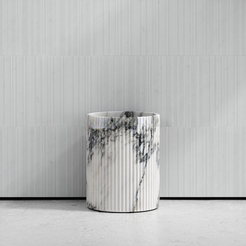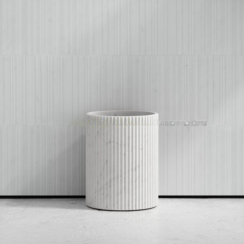 ถังขยะหินอ่อนสีขาว