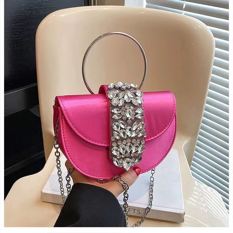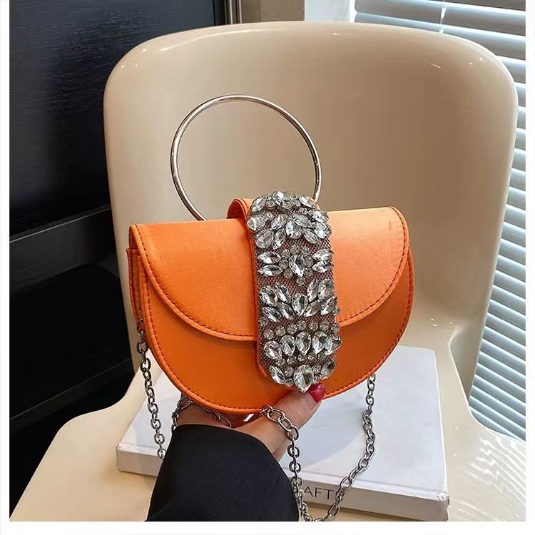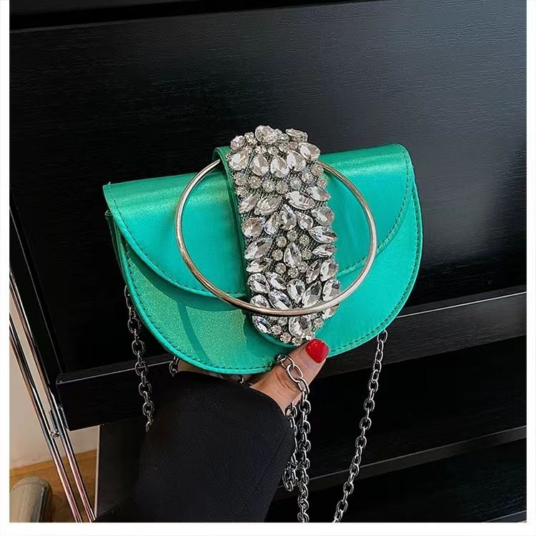 กระเป๋าเงินสะพายข้างหลากสีลูกกวาดสุดหรูสำหรับผู้หญิงกระเป๋าปาร์ตี้สะพายข้างสายโซ่ประดับพลอยเทียมมีหูจับ