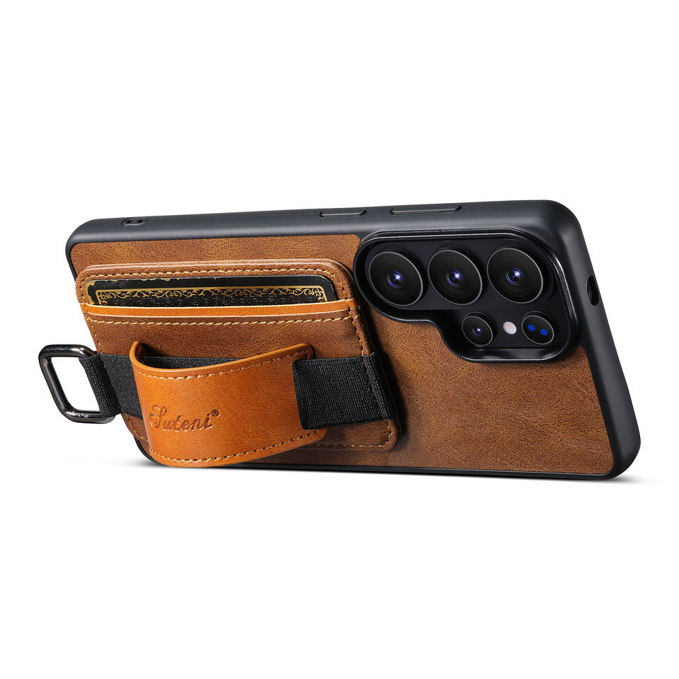 เคสหนังแบบมีช่องใส่การ์ดหลายช่อง พร้อมห่วงคล้องมือ สำหรับ Samsung Galaxy S26 Ultra Plus S25 S24 S23 S22