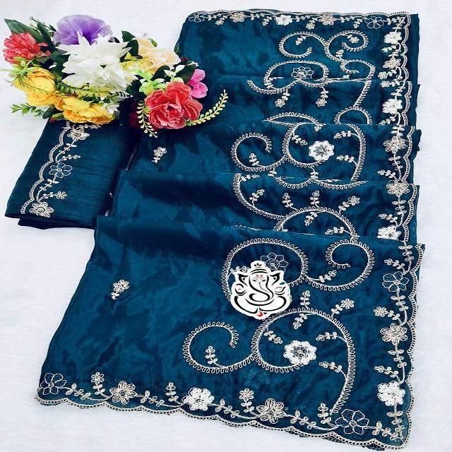 ผ้าส่าหรีอินเดียสำหรับผู้หญิง รุ่นมัลติโค้ดดิ้ง พิตต้า ดาการ์ พร้อมงานปักเลื่อม ขอบผ้าปาลลูหรูหรา ดีไซน์เนอร์คัทเวิร์คบริเวอร์ดจ์ และลายบุตติ