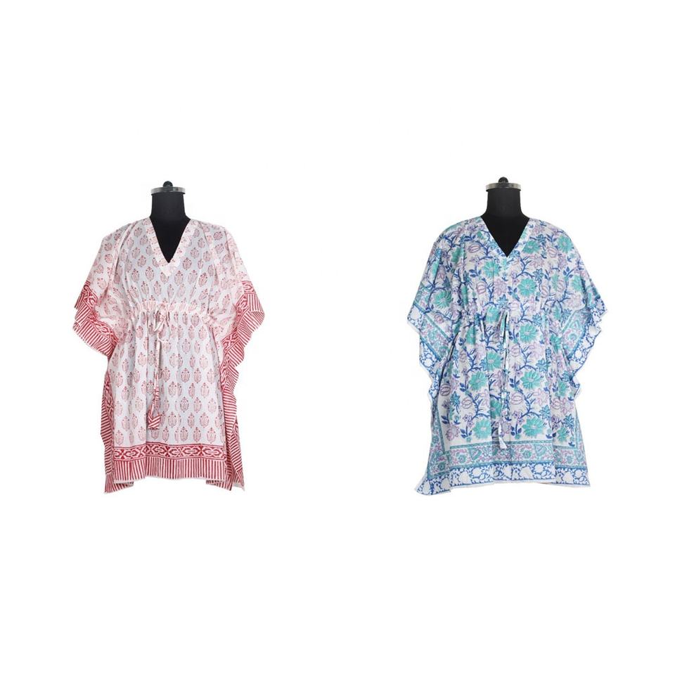 ชุดชายหาดหลากสีฟรีไซส์ผ้าไหมพิมพ์ Caftans สั้น
