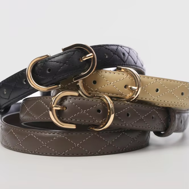 ชุดเครื่องนอนหลากสี C เข็มขัดหนังพร้อมหัวเข็มขัดสีทองสีน้ำตาลและสีเบจ