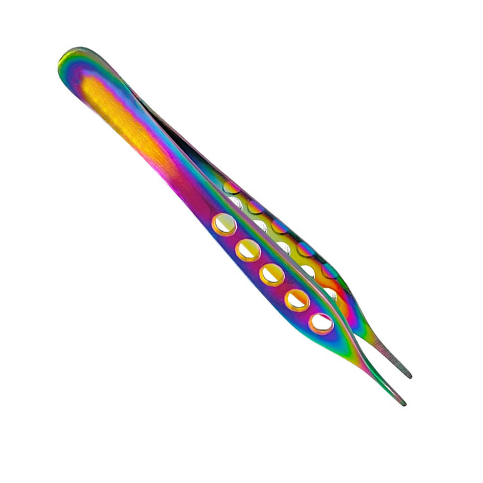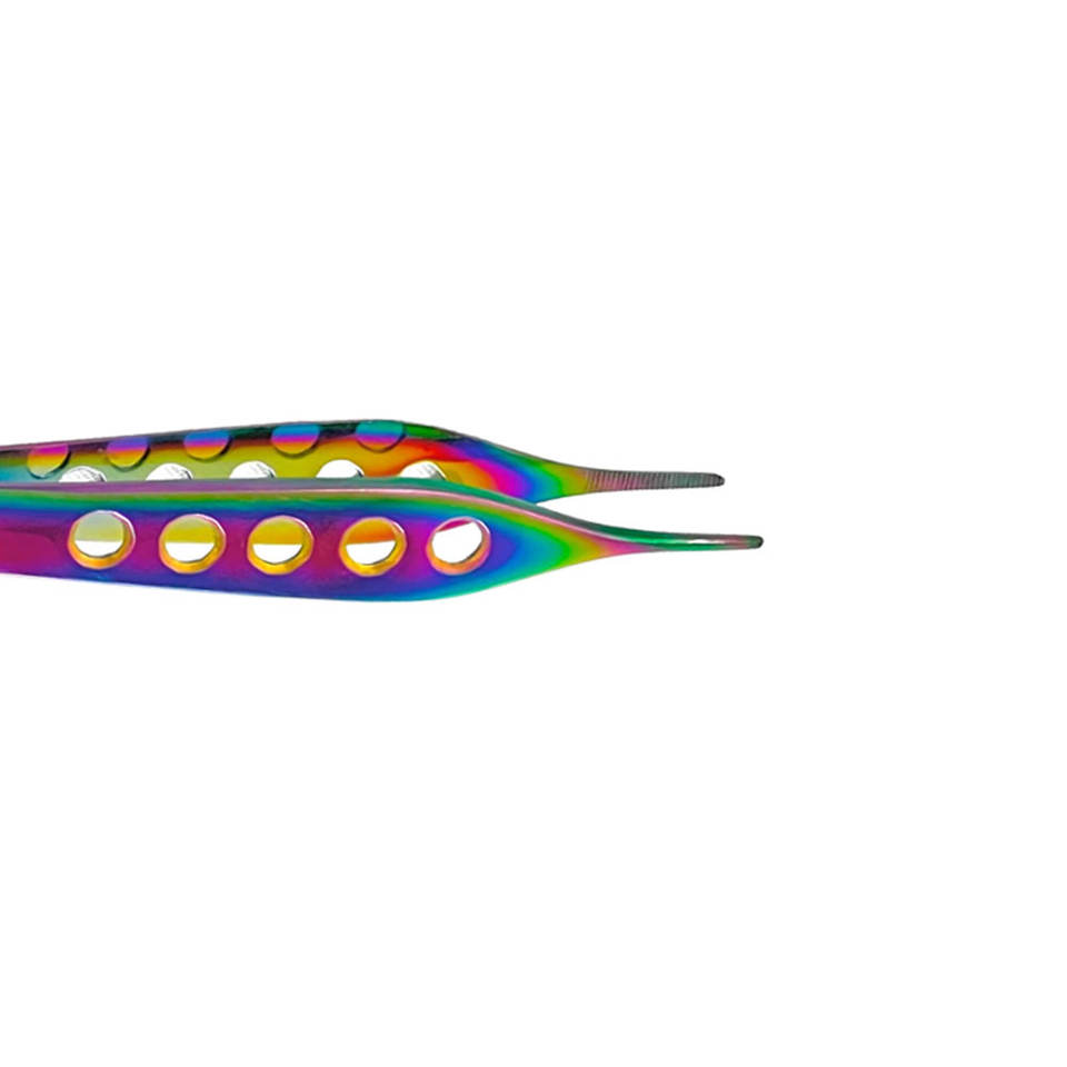 คีมหนีบเนื้อเยื่อแอดสันเคลือบหลายสี12ซม. ฟันตรงละเอียดฟันมีรูสแตนเลสเครื่องมือผ่าตัด