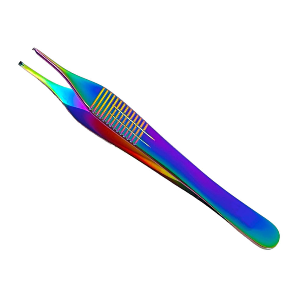 คีมหนีบเนื้อเยื่อ Adson สแตนเลสเคลือบหลายสีเครื่องมือการผ่าตัดฟันทั่วไป12ซม.