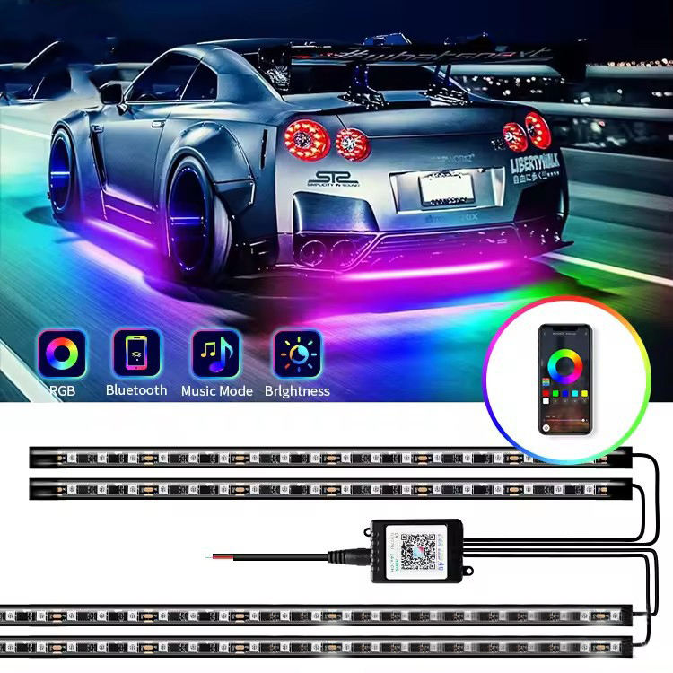 ไฟใต้ท้องรถยนต์แบบไดนามิกหลายสี กันน้ำ RGB ซิงค์กับเสียงเพลง ชุดไฟ LED สำหรับ SUV ไฟตกแต่งภายในรถยนต์