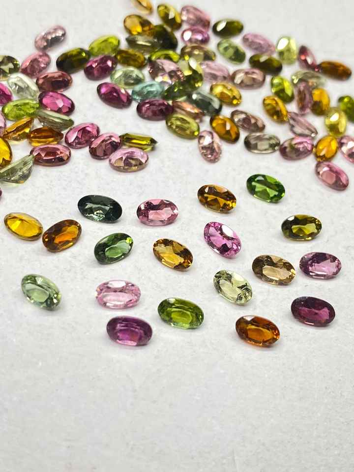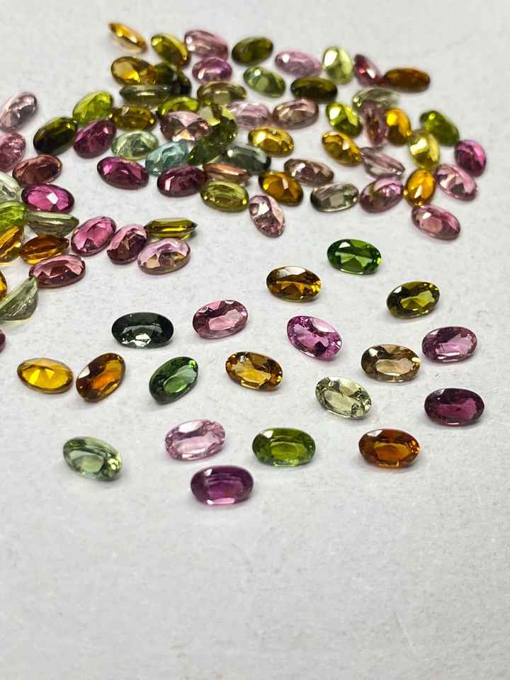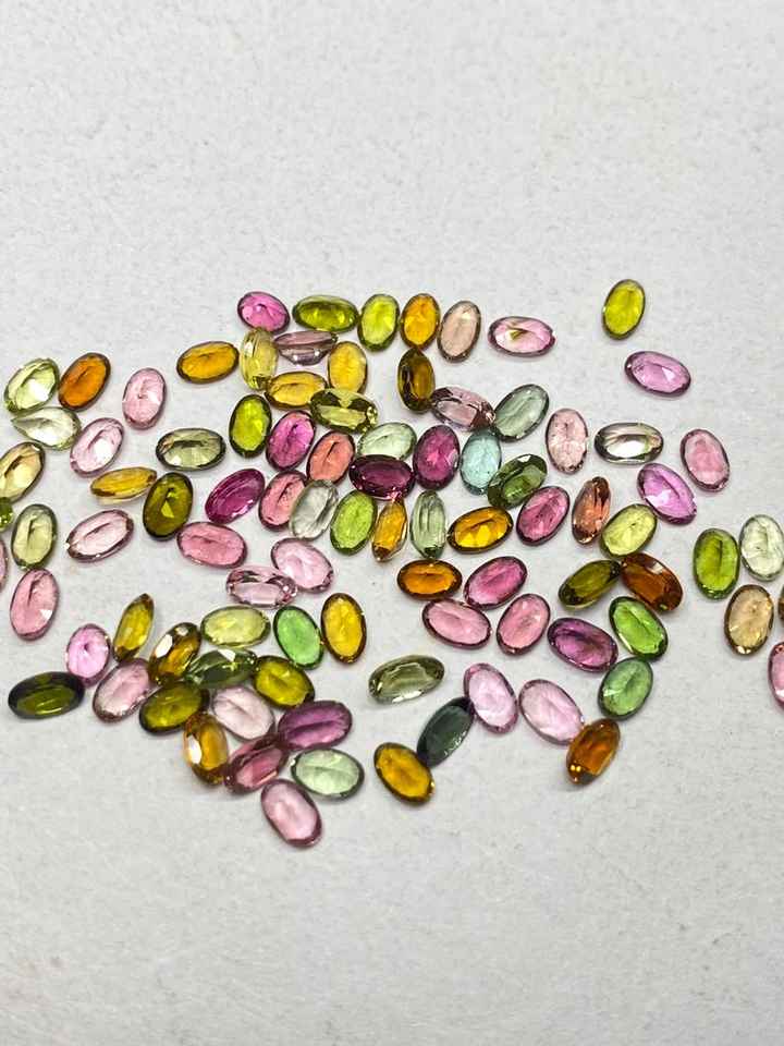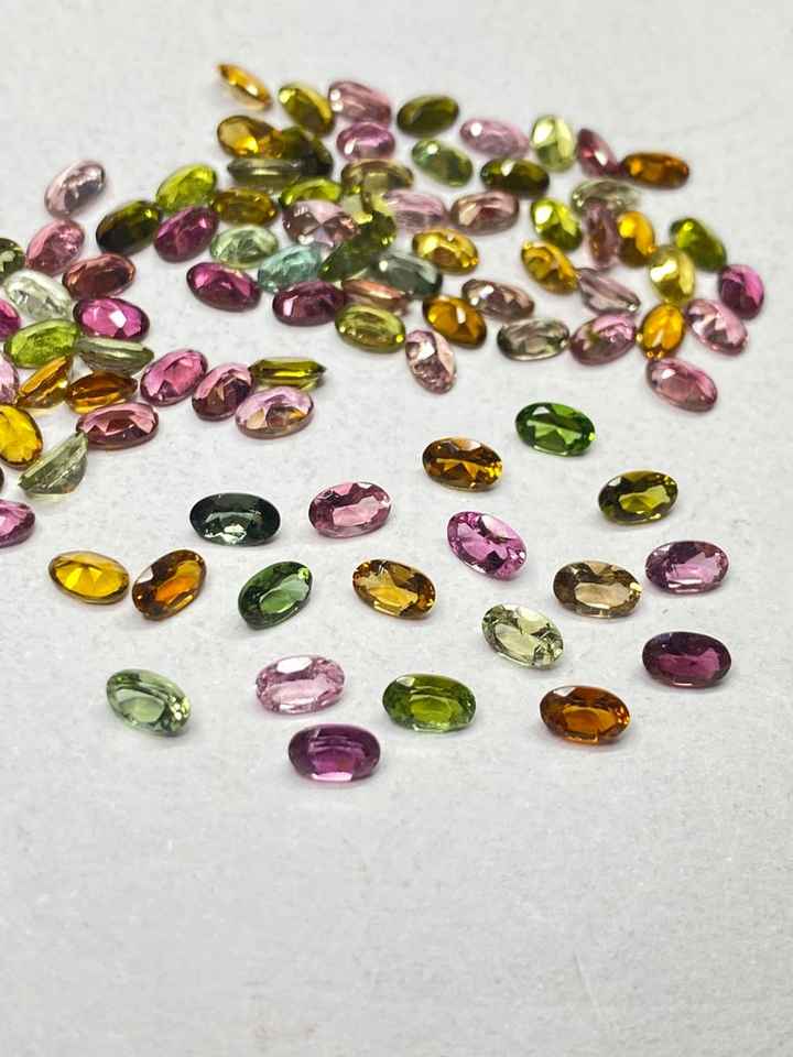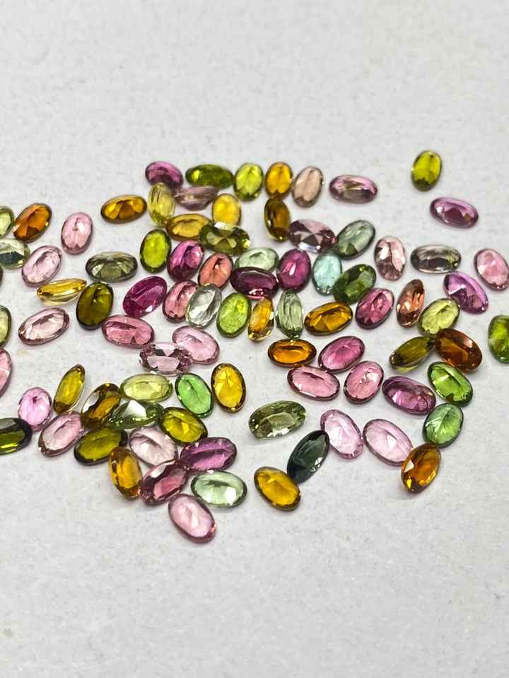 พลอยทัวร์มาลีนหลากสีทรงเหลี่ยมธรรมชาติ รูปไข่ ขนาด 3x5 มม. ถึง 6x8 มม. สำหรับทำเครื่องประดับ