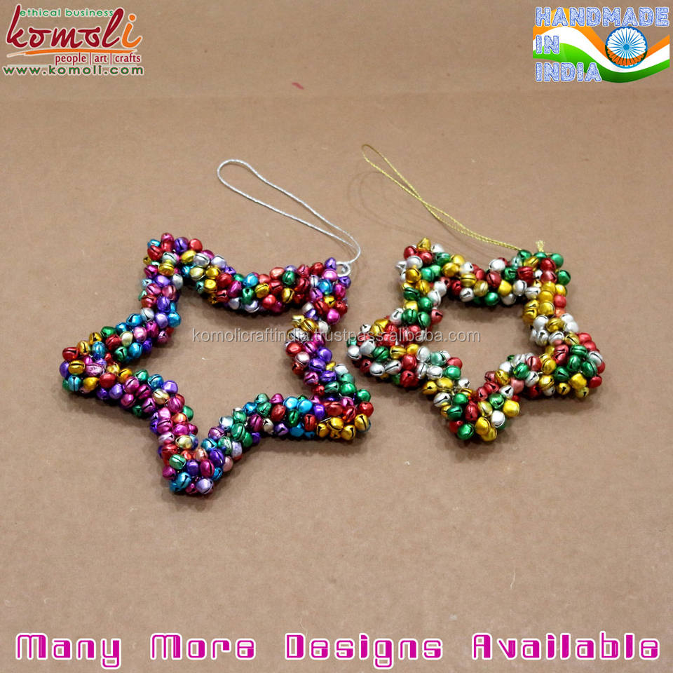 เครื่องประดับคริสต์มาสโลหะหลากสีรูปดาว หัวใจ พระจันทร์ และกระดิ่ง