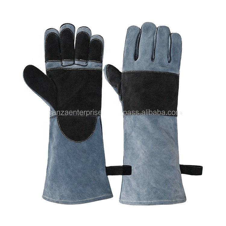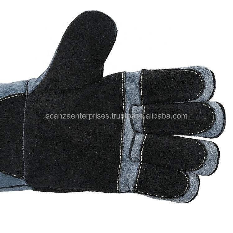 ถุงมือหนังแพะหลายสีถุงมือทำงานเพื่อความปลอดภัยในการก่อสร้างงานเชื่อมด้วยความร้อนป้องกันการสั่นสะเทือน