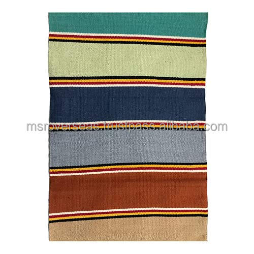 พรมผ้าคอตตอนถักแบบโบฮีเมียนพรมปูพื้นประตูทางเข้าทำด้วยมือหลากสี