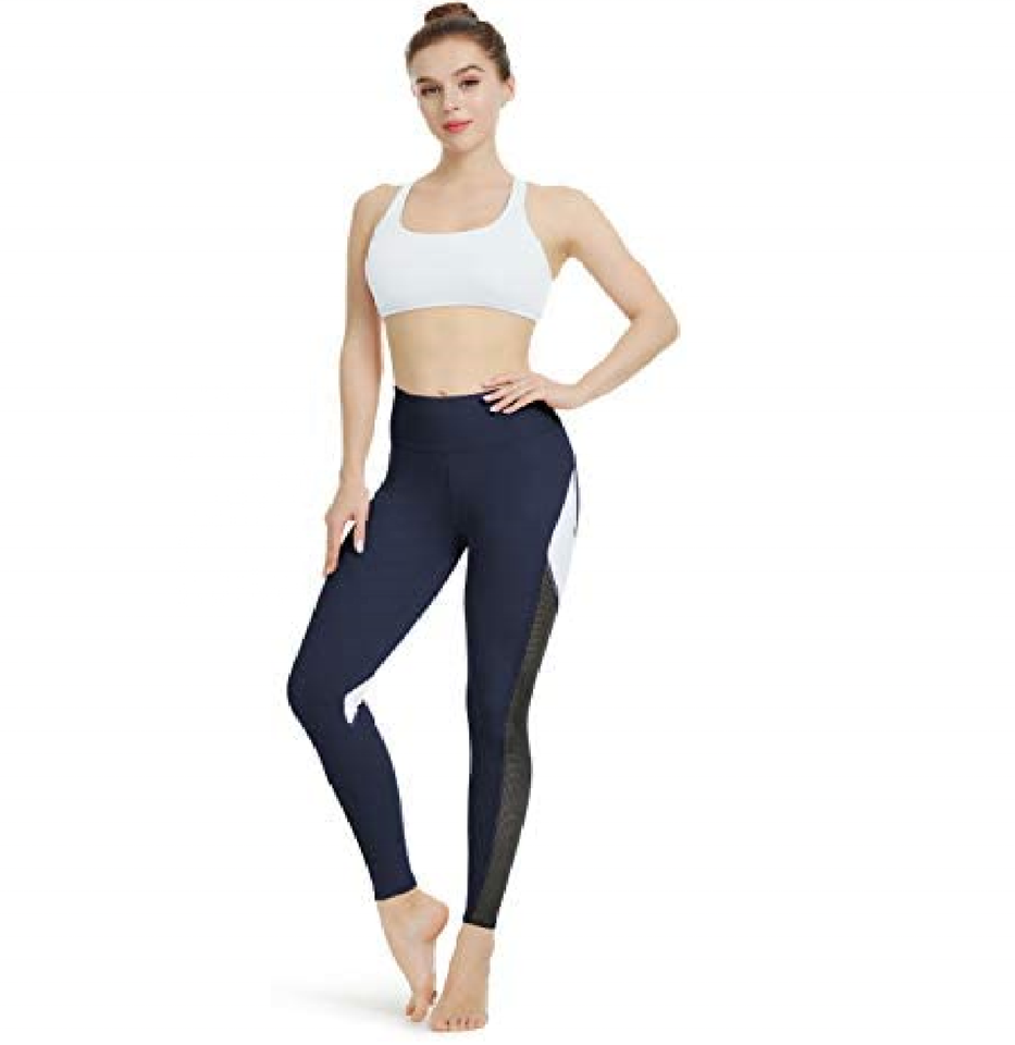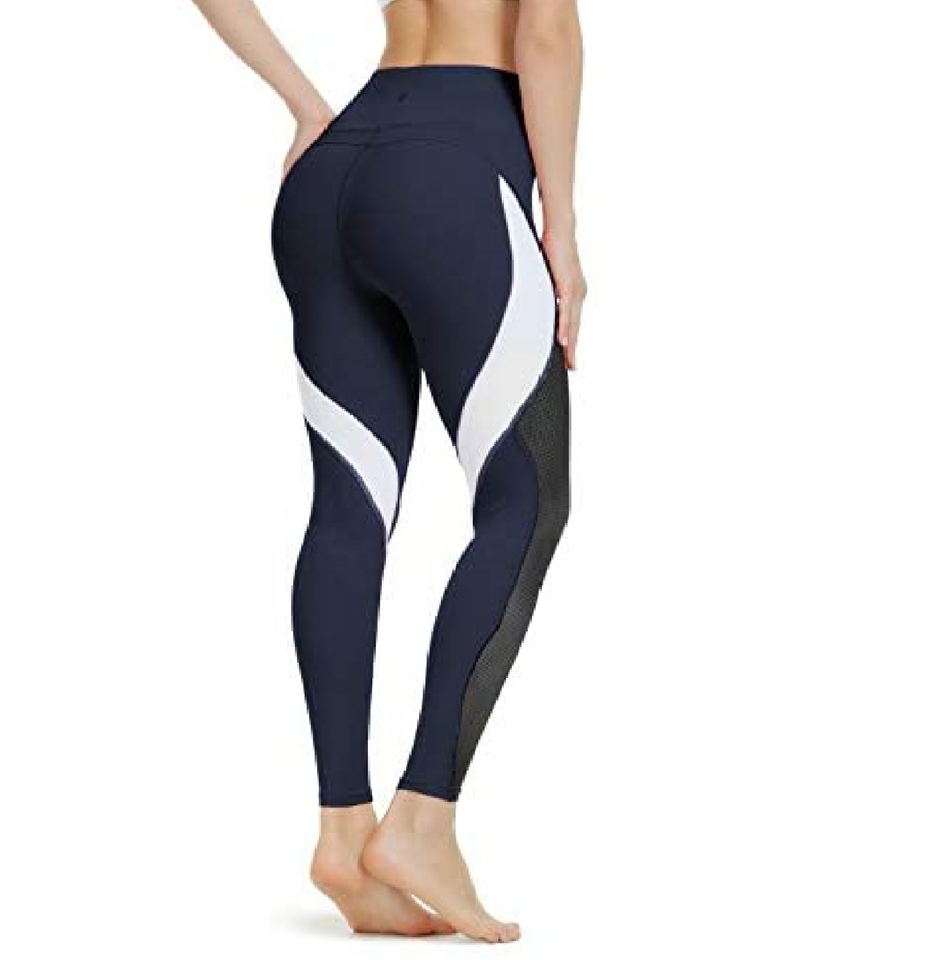 กางเกงโยคะเอวสูงหลากสีของผู้หญิง,เลกกิ้งออกกำลังกายตาข่ายชุดออกกำลังกายเว้าบั้นท้ายรัดรูปใส่เล่นฟิตเนสสำหรับผู้หญิง
