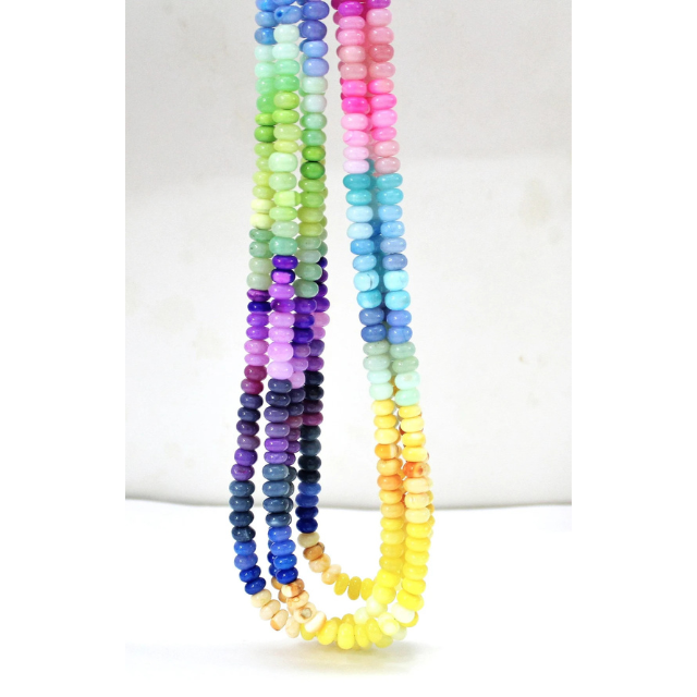 ลูกปัดโอปอลหลากสีทรงรอนเดล: อัญมณีคุณภาพ AAA, 24 นิ้ว