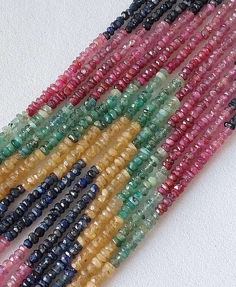 สร้อยคอลูกปัดแซฟไฟร์ทับทิมมรกตเรืองแสงจากราชวงศ์