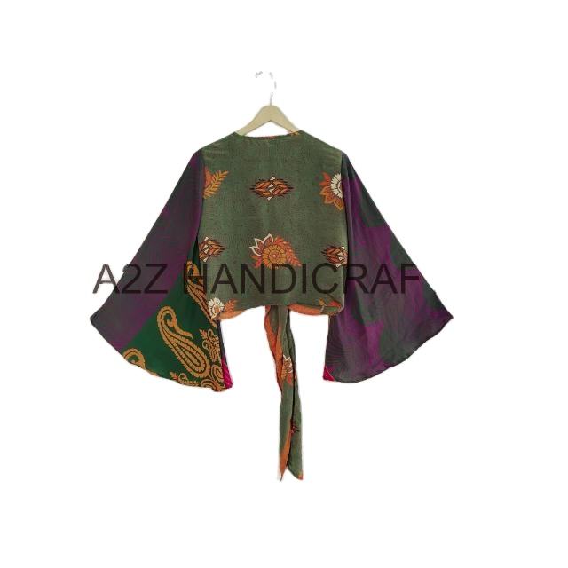 Multi Color Silk Top Dress Clothing Summer Fashion and Top Sari Silk Beach Summer Wear Short Dress Leg-of-mutton Sleeve