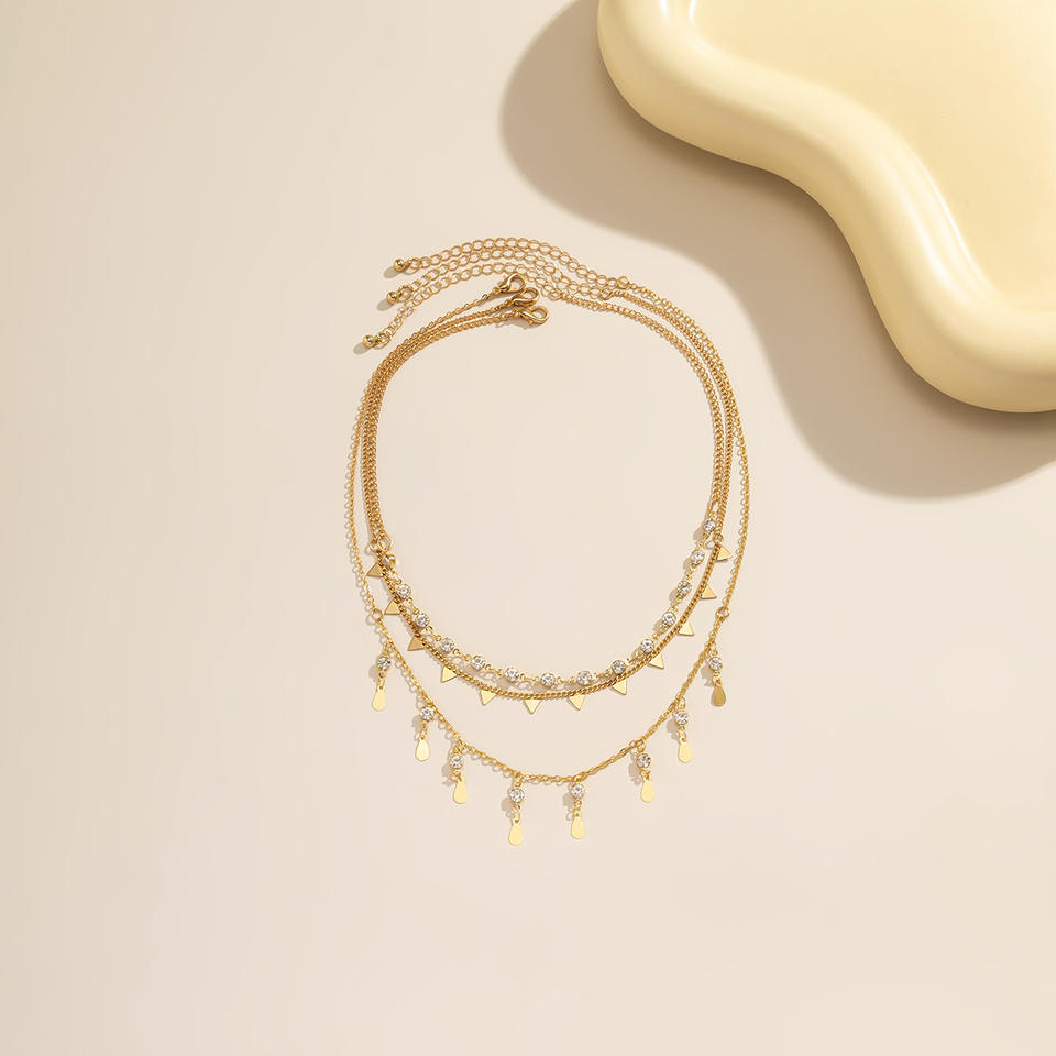 สร้อยคอจี้หินหลากสีสร้อยคอชุบทองหลายชั้นสำหรับเป็นของขวัญผู้หญิง