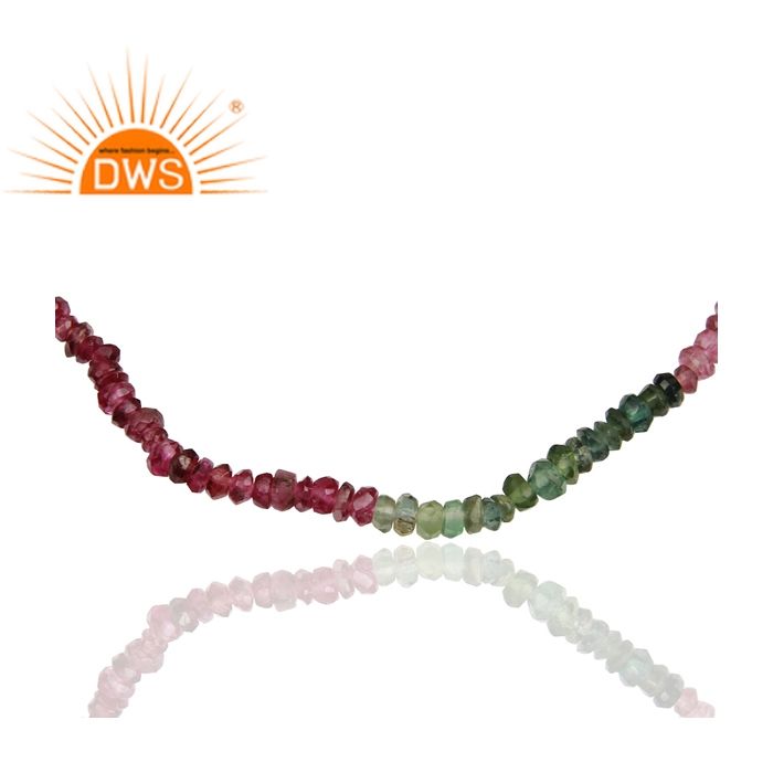 หลายสีทัวร์มาลีนลูกปัดอัญมณีสร้อยคอเงิน925เครื่องประดับผู้ค้าส่ง