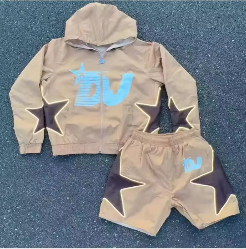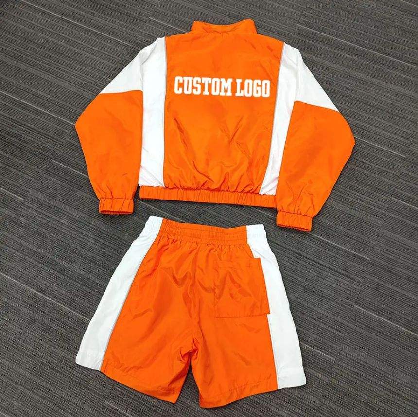 ชุดเสื้อกันลมสำหรับผู้ชายกางเกงขาสั้นมีหลายสีซิปครึ่งโพลีเอสเตอร์100% หนัก