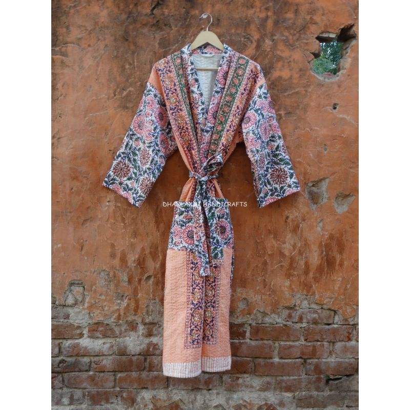ชุดนอนผ้าฝ้ายอินเดียพิมพ์ลายดอกไม้หลายสีชุดเดรสชุดเดรสยาวให้ความอบอุ่นขนาดพิเศษขายส่ง