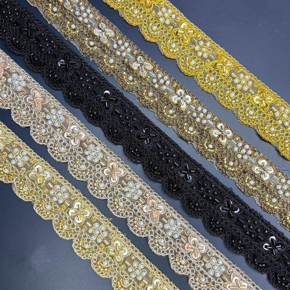 ริบบิ้นตาข่ายลายดอกไม้หรูหราประดับด้วยเลื่อมหลากสีปักลายฉลุ สำหรับตกแต่งชุดแต่งงานและเสื้อผ้า