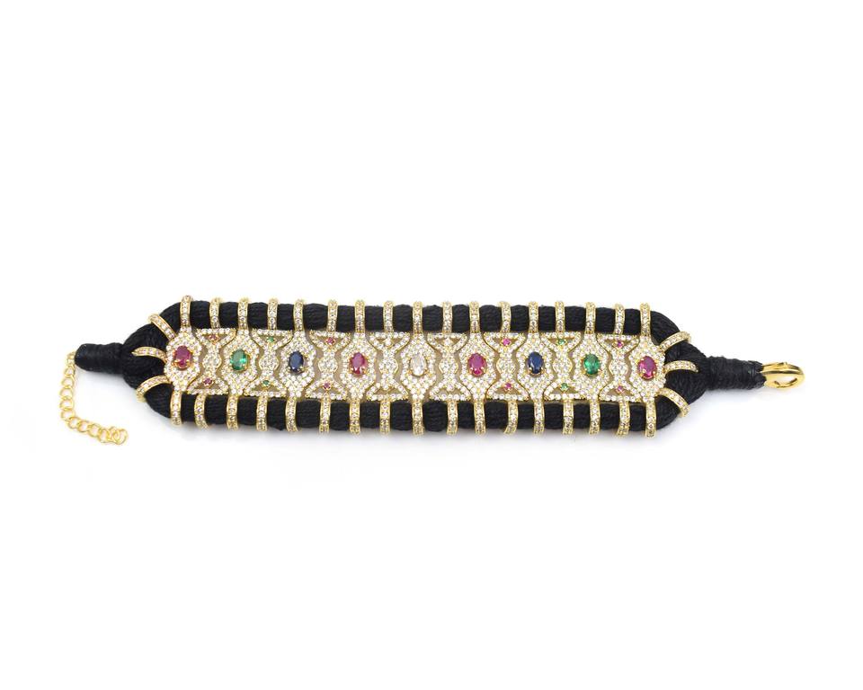 กำไลข้อมือทองชุบแบบปรับได้ ประดับเพชรคิวบิกเซอร์โคเนียหลายเม็ด งานแฮนด์เมด