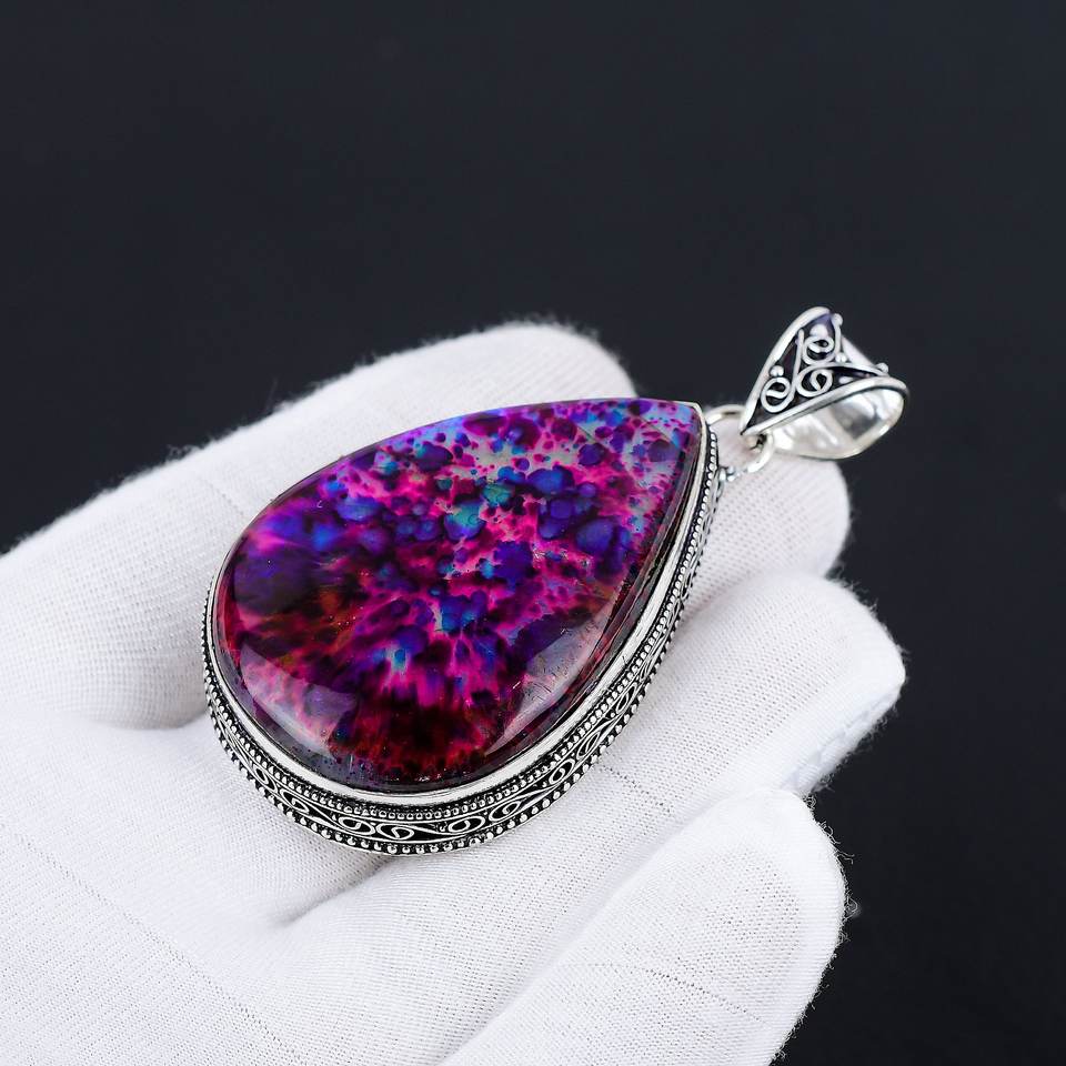 เครื่องประดับอัญมณีคลาสสิกสีเงินสเตอร์ลิง925ทำด้วยมือจี้แลบราโดไรต์หลากสีกระพริบสวยงามจี้แฟชั่น
