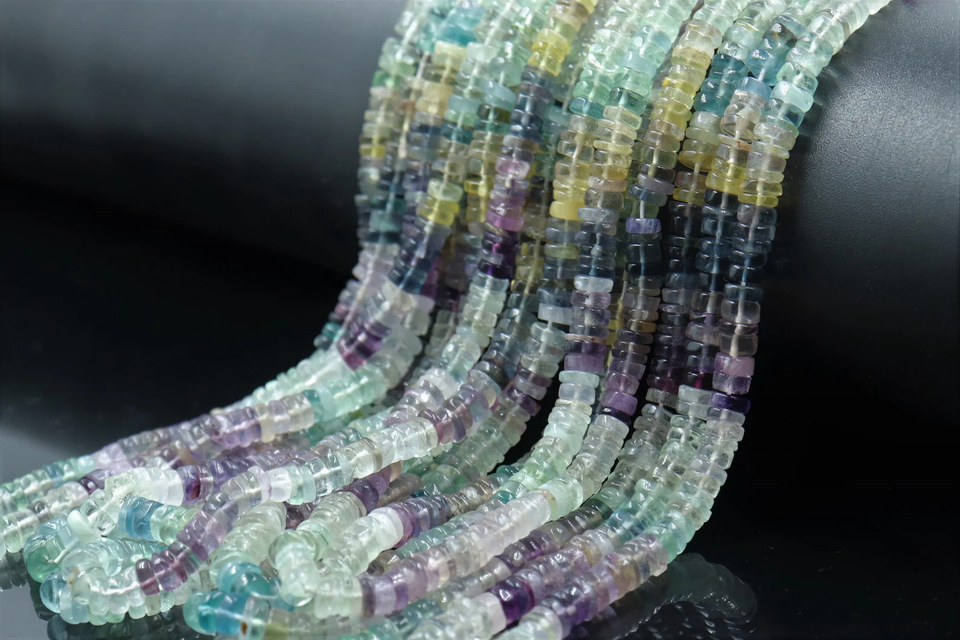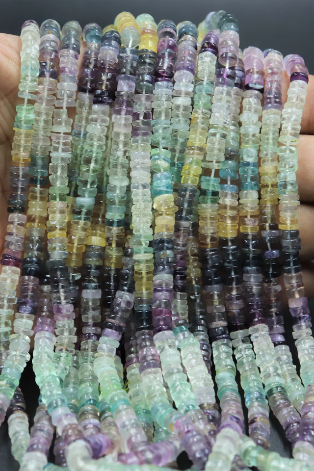 ลูกปัดฟลูออไรต์หลากสี ทรงยางรถยนต์ผิวเรียบ
