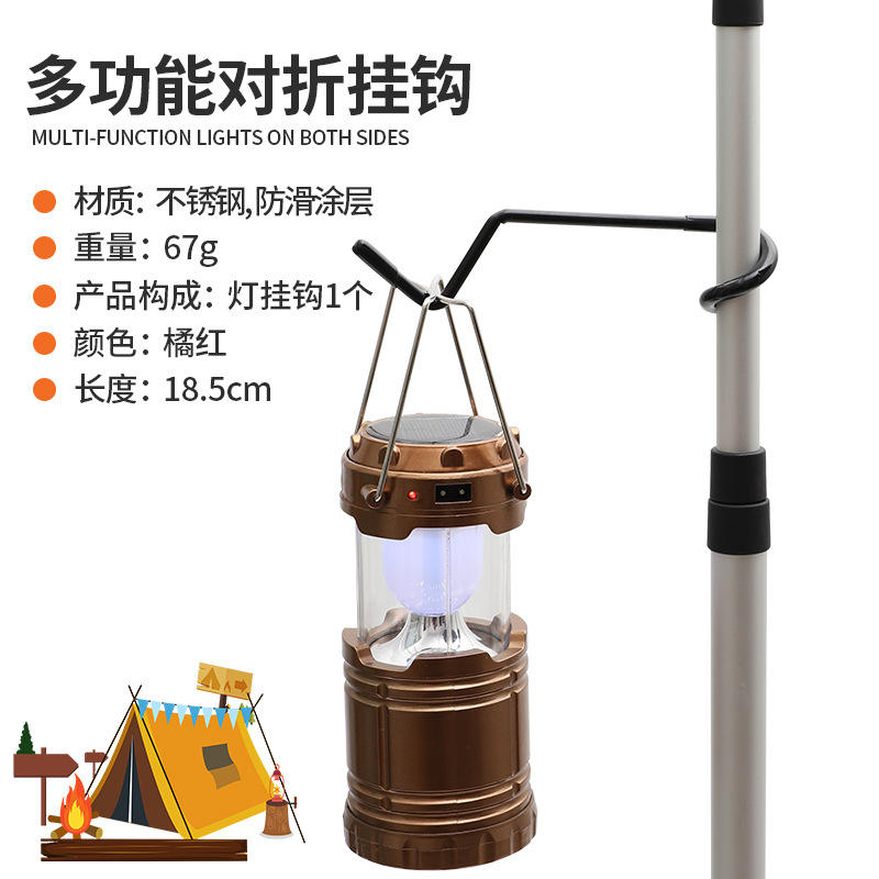 ตะขอแขวนไฟแคมป์ปิ้งอเนกประสงค์ สแตนเลส 67 กรัม สีส้ม ตะขอแขวนเต็นท์แบบพับได้ ตะขอแขวนเสาแบบพกพาสำหรับใช้งานกลางแจ้ง