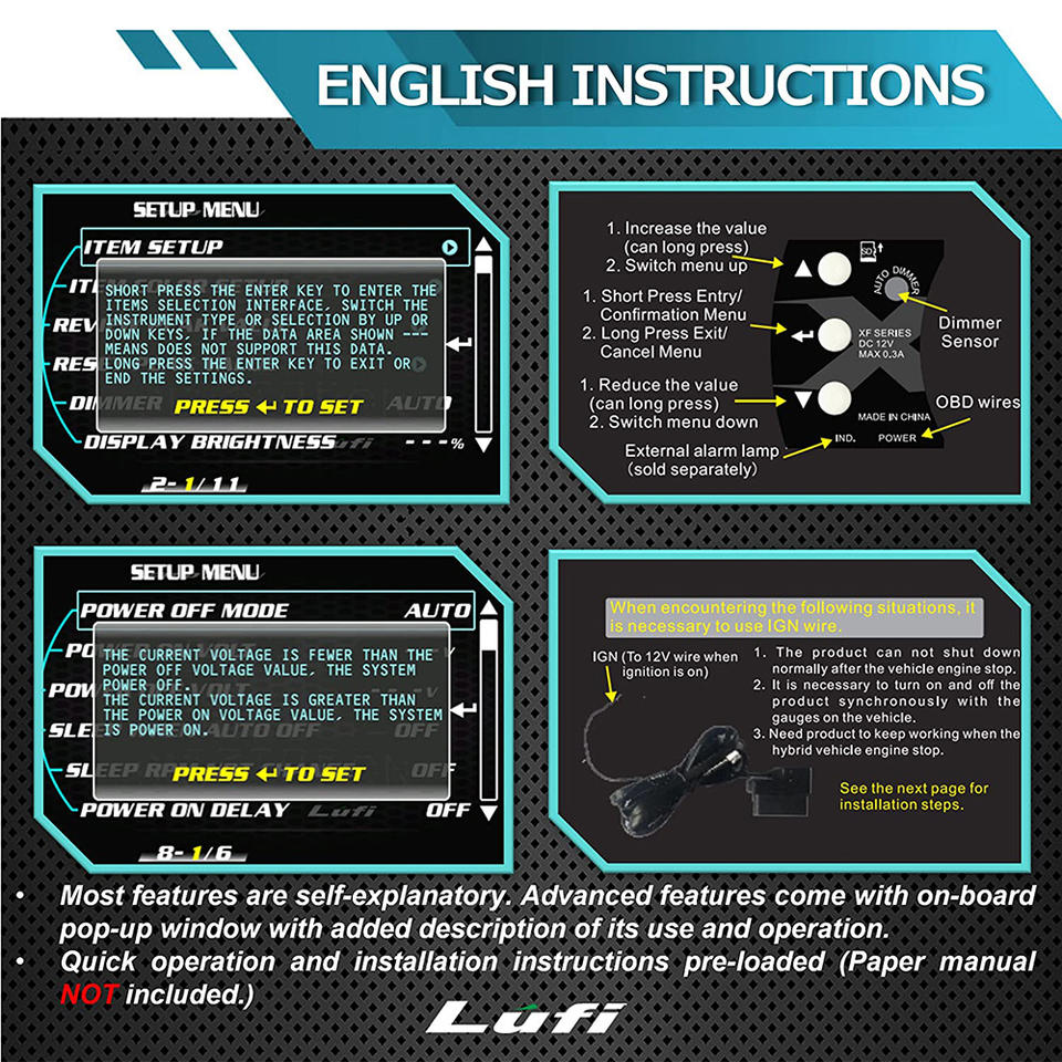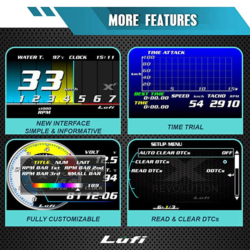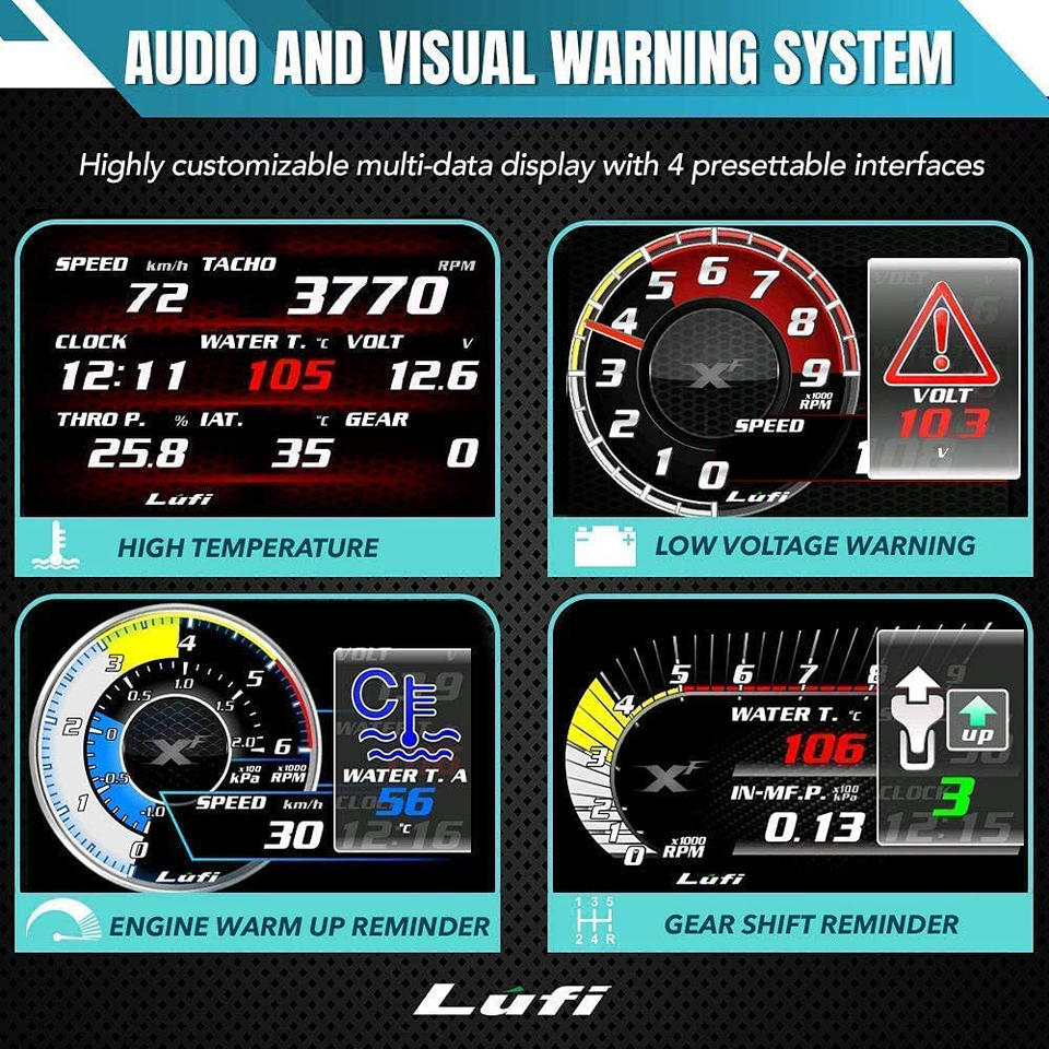 มาตรวัดดิจิตอลอเนกประสงค์ Lufi XF Obd2 มาตรวัดดิจิตอลสำหรับรถยนต์ วัดแรงดันเทอร์ไบน์ OBD HUD จอแสดงผลบนกระจกหน้ารถ