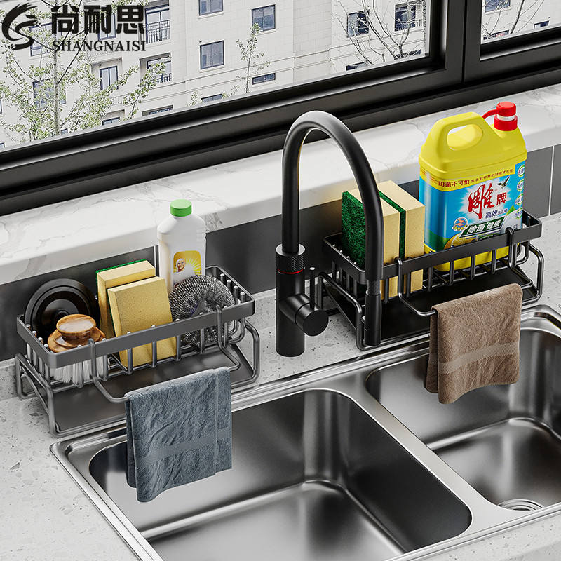 ชั้นวางของในครัวอเนกประสงค์ รูปทรงสี่เหลี่ยมผืนผ้า ทำจากเหล็ก สำหรับเก็บผ้าเช็ดจาน ที่คว่ำจานในอ่างล้างจาน ไม่ต้องติดตั้ง ความลึก 8-11.9 นิ้ว