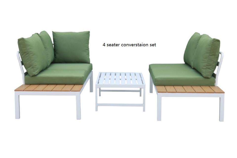 ชุดเฟอร์นิเจอร์ระเบียงกลางแจ้งรูปตัว L อเนกประสงค์ชุดสวนกรอบอลูมิเนียมดีไซน์ใหม่พร้อมโซฟาแสนสบาย