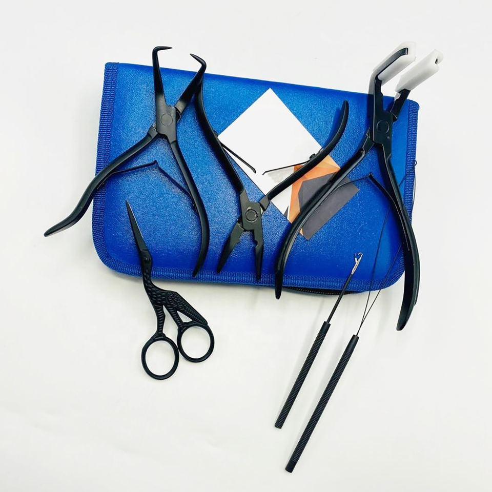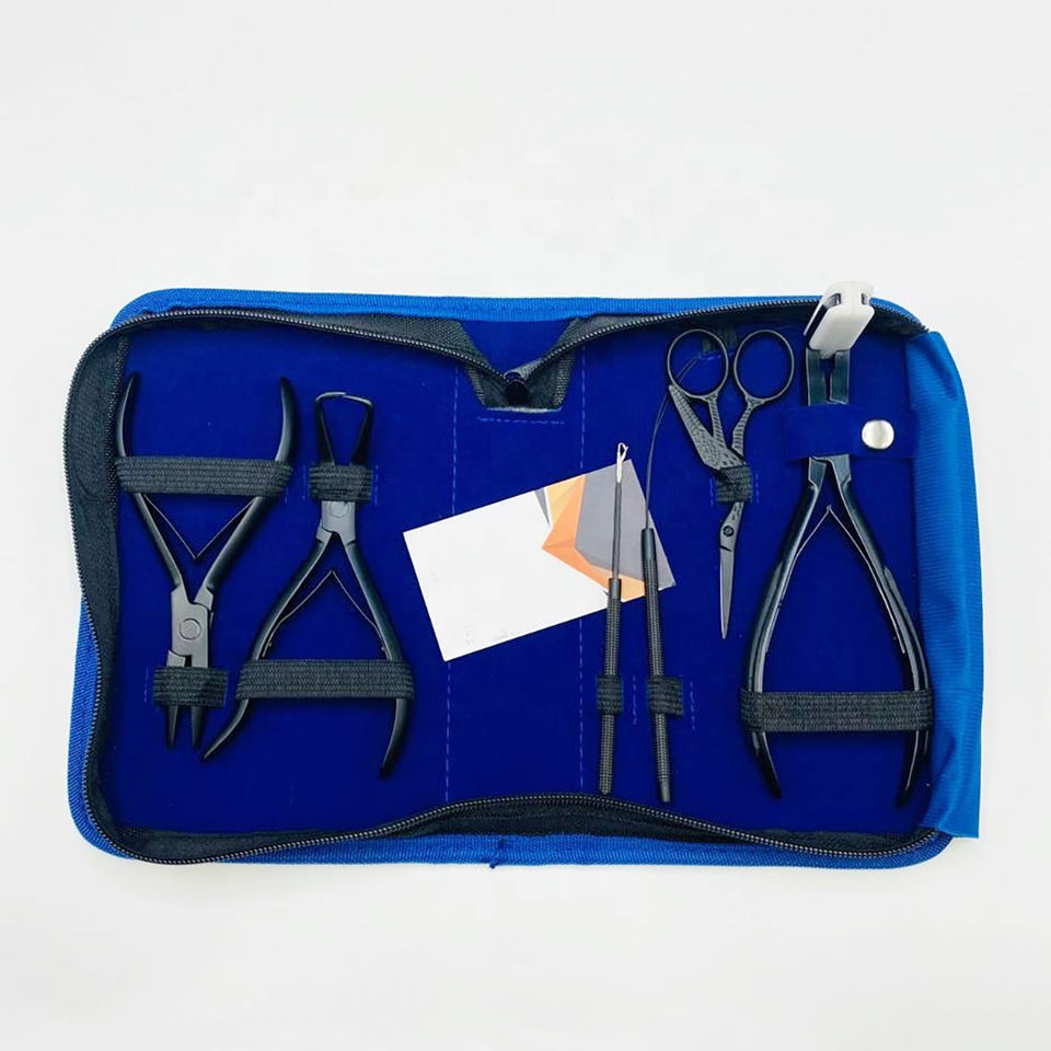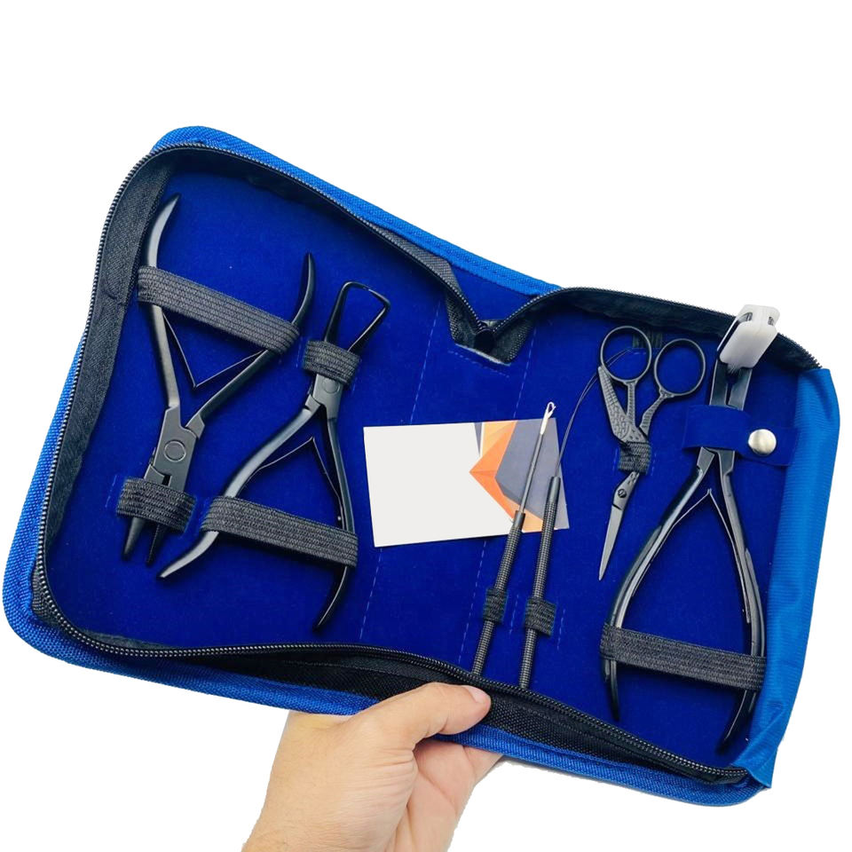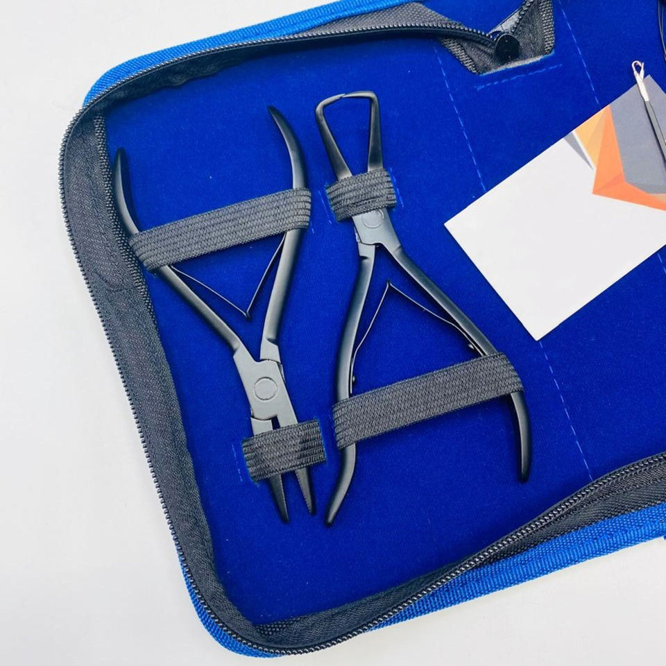 ชุดกำจัดลูกปัดแหวนไมโครอเนกประสงค์คีม2รูพร้อมห่วงตะขอสำหรับต่อผมสีดำสแตนเลสสตีล