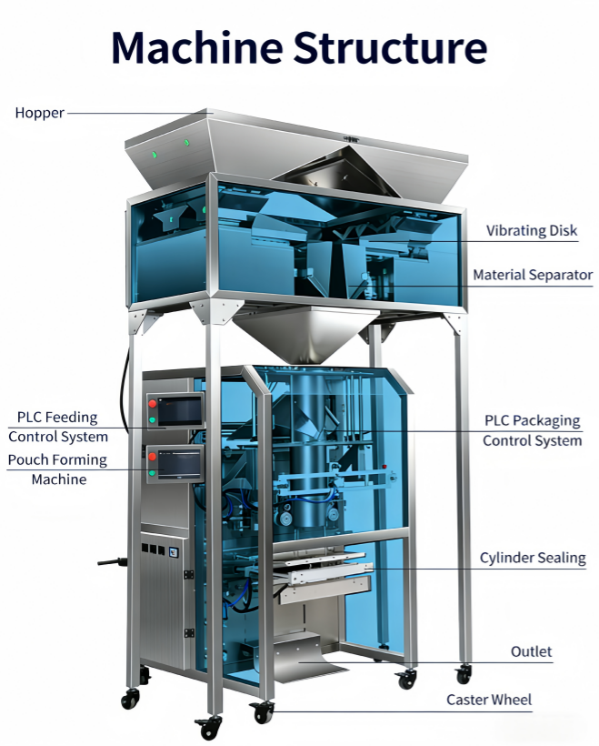 เครื่องบรรจุเม็ดผงอเนกประสงค์สำหรับชา กาแฟ น้ำตาล เกลือ พริกไทย