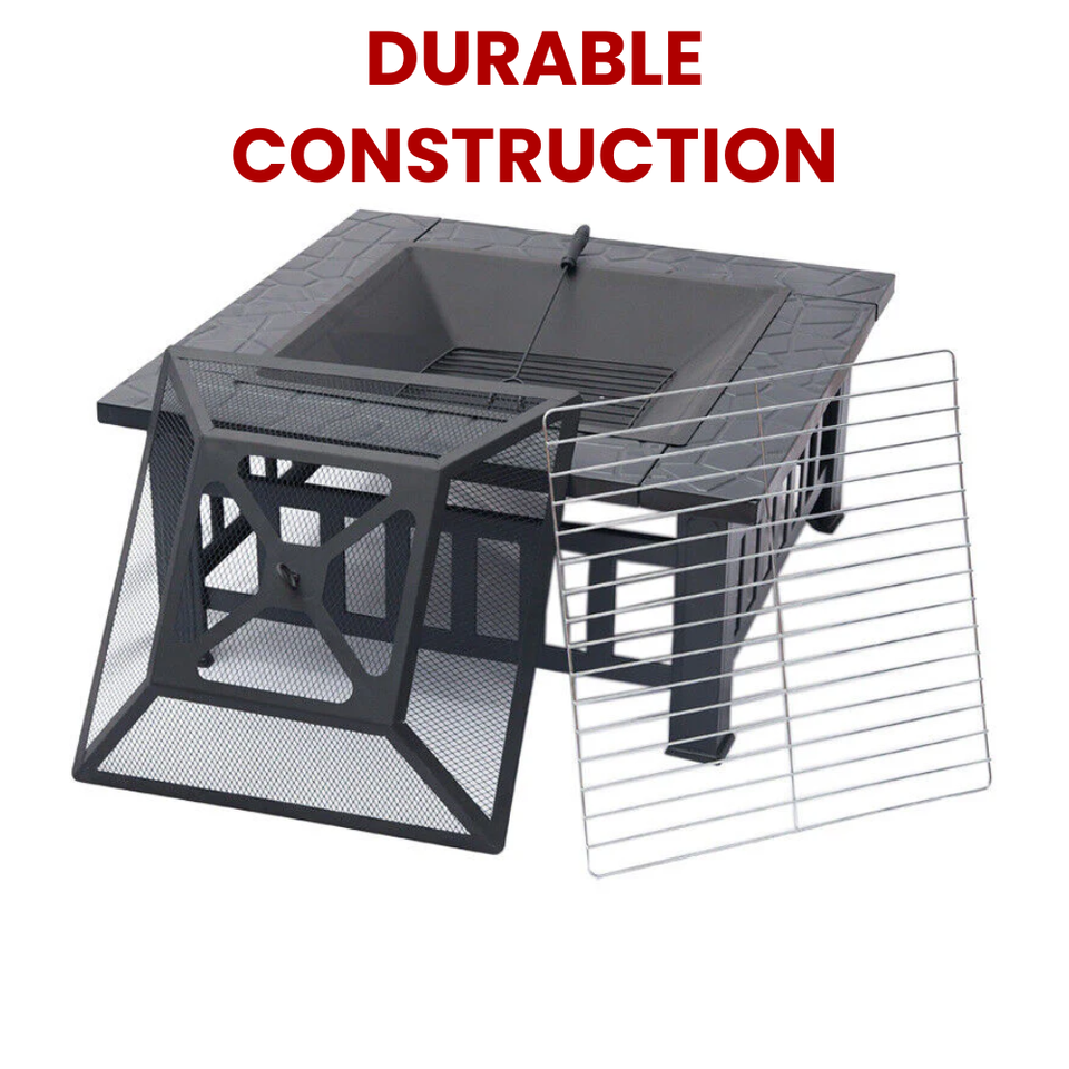 เตาไฟอเนกประสงค์ทรงสี่เหลี่ยมพร้อมโต๊ะกลางแจ้ง