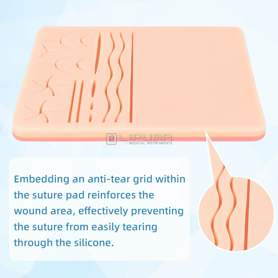 แผ่นเย็บแผลแบบทำมือแผ่นฝึกสำหรับนักเรียนแบบสมจริงแผ่นซิลิโคนสามชั้นเครื่องมือทางการแพทย์ตัดบาดแผลได้16ชั้น