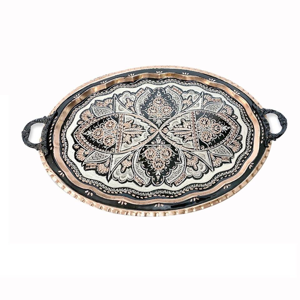 ถาดเสิร์ฟพิซซ่าพาสต้าตกแต่งอเนกประสงค์พร้อมที่จับถาดโลหะทองแดงใช้ในบ้านห้องครัวประจำวันการจัดเลี้ยง