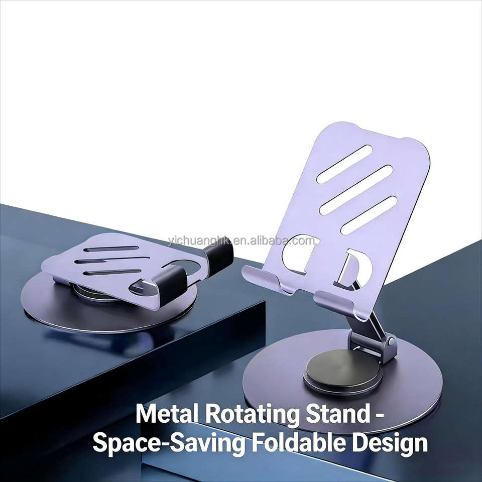 ขาตั้งโทรศัพท์มือถือแบบตั้งโต๊ะโลหะอเนกประสงค์ ปรับระดับความสูงได้ พับเก็บได้ หมุนได้ 360 องศา
