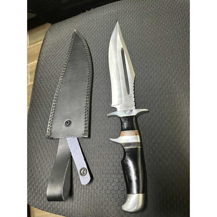 มีดโบวี่อเนกประสงค์สำหรับล่าสัตว์และตั้งแคมป์ ด้ามทำมือจากเขาควาย ใบมีดสแตนเลส มีดสำหรับกิจกรรมกลางแจ้ง