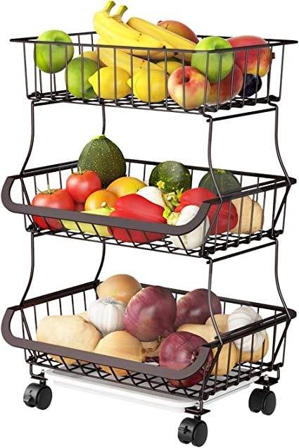 ตะกร้าเก็บผักอเนกประสงค์แบบเคลื่อนย้ายได้ ชั้นวางของในครัวสำหรับห้องนั่งเล่น รถเข็นเก็บขนมในบ้าน ตะกร้าเก็บของ